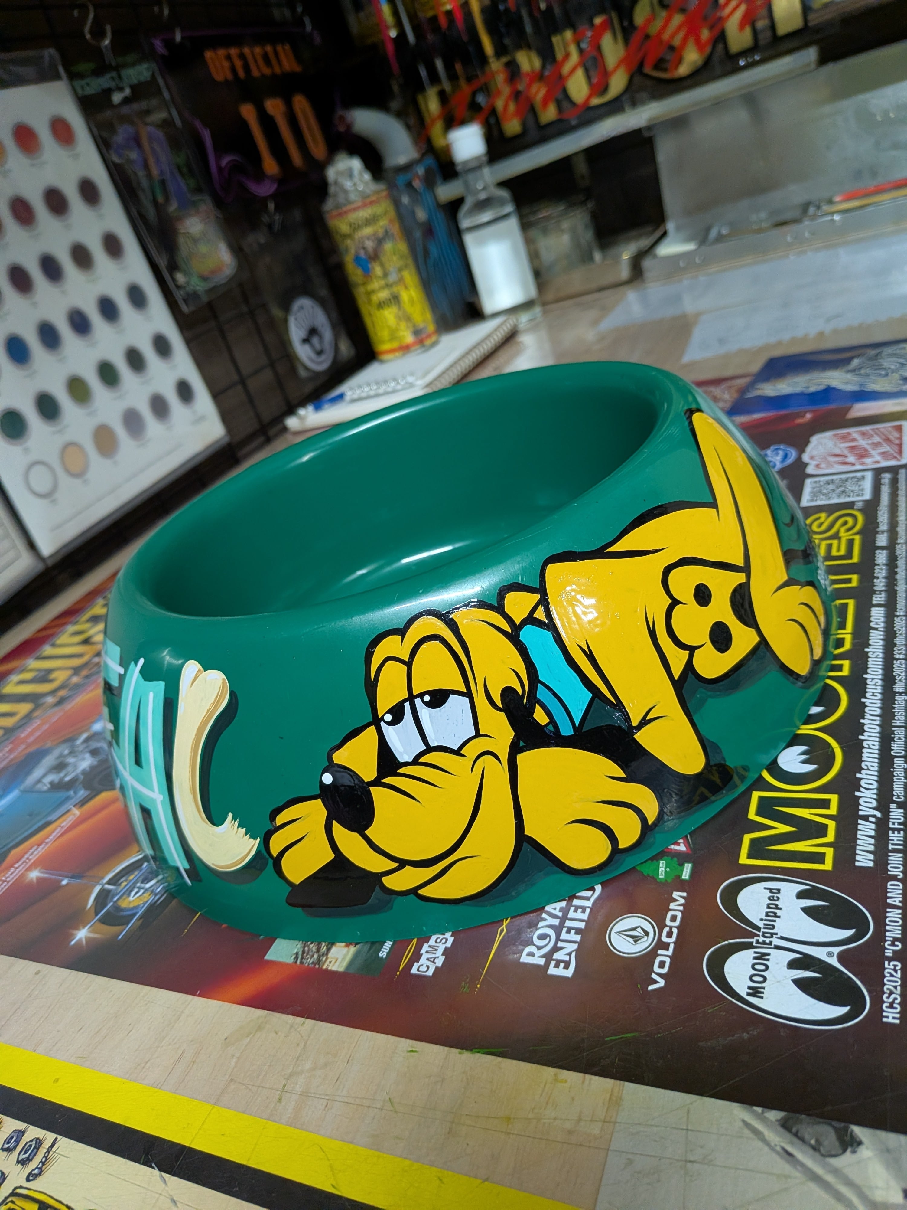 プルートを描いたワンちゃんの餌入れです。